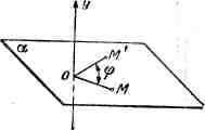 ^ ВРАЩЕНИЕ ВОКРУГ ОСИ. Перемещение в пространстве, при котором любая точка М плоскости а перемещается в новое положение М' так, что расстояния от точек М и М' до оси Оу, перпендикулярной плоскости α, равны. Угол φ называется углом вращения. Вращение положительно, если точки движутся против движения часовой стрелки, если смотреть на движение от положительного конца оси вращения. Вращение вокруг оси может иметь постоянную или переменную угловую скорость.