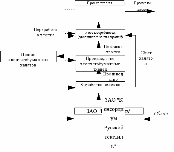 – поток денежных средств.Рис. 3.5 Технологическая цепочка ФПГ "Консорциум Русский текстиль"