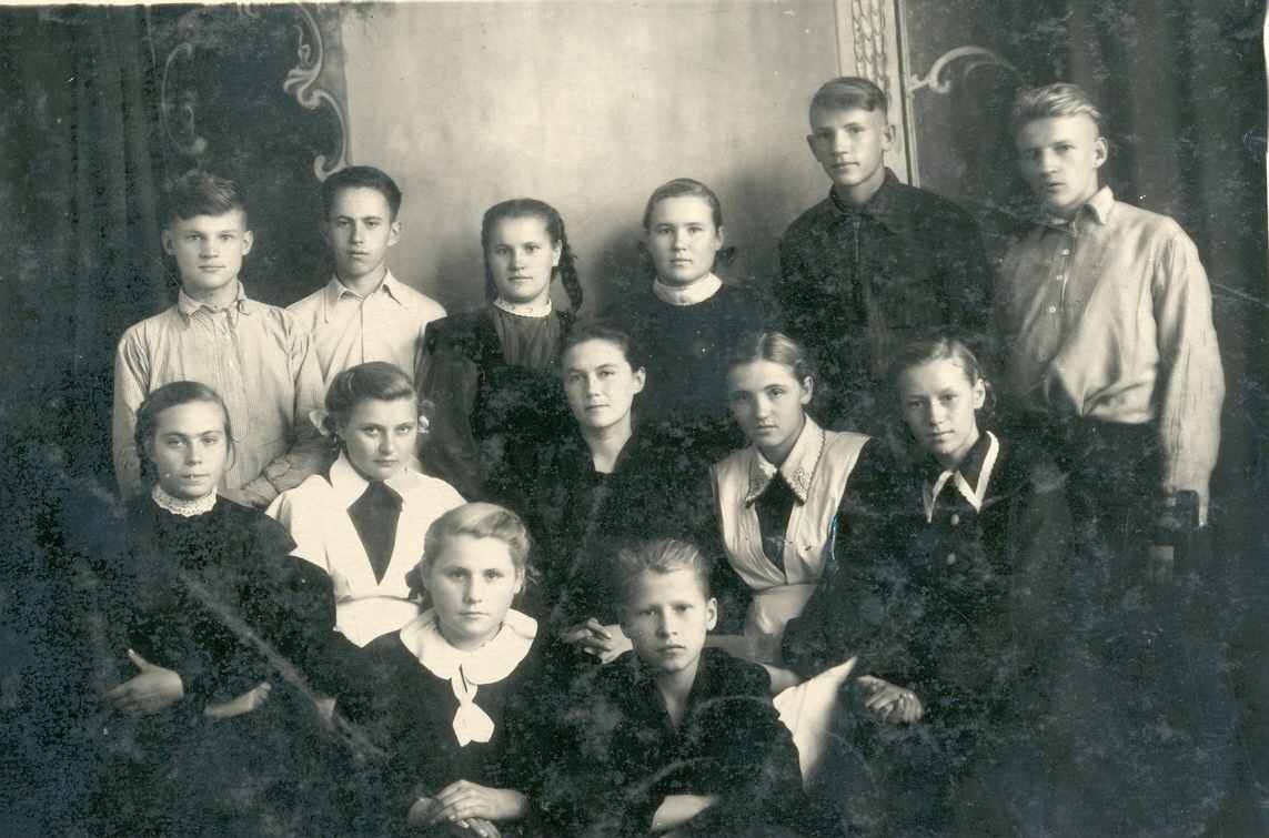 Летом 1943 года немощным, едва передвигавшимся на своих больных ногах, без зубов (была цинга) вернулся отец из труд армии. Перед депортацией отец успел выучиться на тракториста- комбайнера. Отцу предложили работать на комбайне. Работал он на «Сталинце» - это огромная машина, которую таскал за собой маленький колесный трактор. Относился отец к работе очень добросовестно, у него не было выходных ни в ясную погоду, ни в дождливую. Он мог, по малейшему изменению стука своей машины, знать о поломке. Был отец всегда в передовиках. В хорошую погоду он убирал по 20-25 га хлеба. Отношение сельчан к отцу, да и ко всем его братьям было доброе, звали их только по имени и отчеству. Отец любил шутить, может это и привлекало к нему людей. Женщины работали на разных работах, а когда колхозы стали заниматься табаководством, были заняты на этом производстве и еще в колхозном саду».
