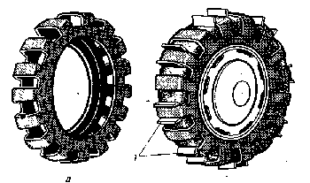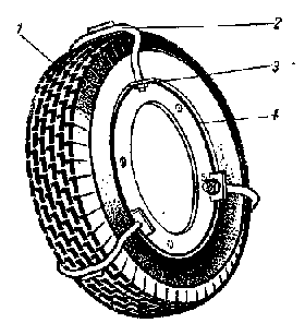 1 — колесо; 2 — грунтозацепы; 3 — гайки; 4 — металлическое кольцо