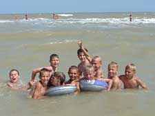 Дети купаются каждый день под присмотром своих важатых, медработников, плаврука и опытных спасателей.Вода в лимане Азовского моря хорошо прогревается, поэтому купаться здесь можно с начала июня до середины сентября. Песчаный пляж, воздух, пропитанный лиственным ароматом и близость лечебных грязей лимана Азовского моря, делают это место привлекательным для детского отдыха. Морские волны, чудесный воздух, наполненный ароматом приазовских степей, благожелательность новых друзей окажут благотворительное влияние на здоровье Ваших детей, на их настроение и позволят полноценно отдохнуть перед учёбой!
