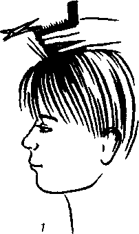 5. Волосся тім'яної зони стрижуть за вертикальними проділами з відтягуванням догори.