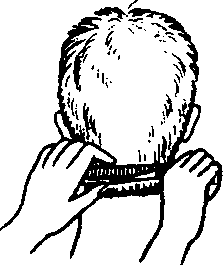 2. Горизонтальним проділом відділяють пасмо, що проходить через потиличний виступ.