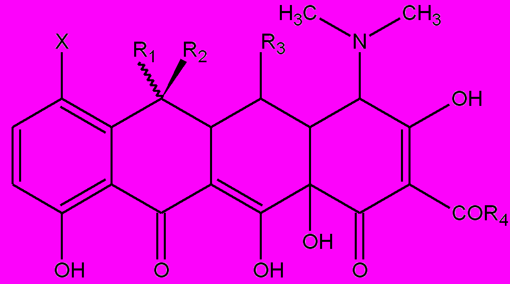 | Хлортетрациклин | Cl | CH3 | OH | H | NH2 |