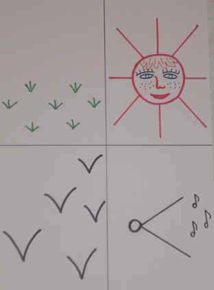 Использование опорных рисунков для обучения заучиванию стихотворений увлекает детей, превращает занятие в игру. Этот метод особенно эффективен для дошкольников с речевой патологией. Как уже было отмечено, в дошкольном возрасте преобладает наглядно-образная память, и запоминание носит непроизвольный характер зрительный же образ, сохранившихся у ребенка после прослушивания, сопровождающегося просмотром рисунков, позволяет значительно быстрее запомнить текст. Сначала следует подбирать опорные картинки стихотворению (желательно на каждую строчку)/ Картинки должны быть яркими и узнаваемыми. При чтении стихотворения картинки выставляются на фланелеграф. После прочтения дети воспроизводят стихотворение по опорным картинкам.