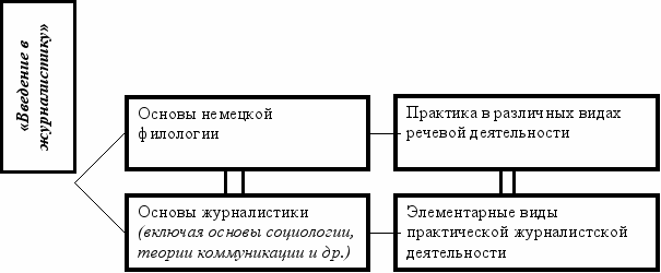 ^ Филологические знания и умения. 1. Формирование представлений о/об: а) Жанровом разнообразии публицистического стиля (информационные, аналитические, художественно-публицистические жанры); б) Основных типах лексических единиц, омонимии, синонимии, полисемии; заимствованиях и интернационализмах, топонимах и других языковых средствах применительно к публицистическим текстам; в) Особенностях использования композиционных типов речи (повествования, описания, рассуждения, сообщения) в публицистических текстах различных жанров; 2. Развитие умений: а) Делать лингвистические наблюдения в отношении употребления слов, языковых клише, грамматических структур, синтаксического построения речи в публицистических текстах; б) Составлять тематические списки специализированных журналистских терминов, уметь давать дефиниции (на русском и немецком языках); в) Сопоставлять объём значений специализированной журналистской терминологии в русском и немецком языках.