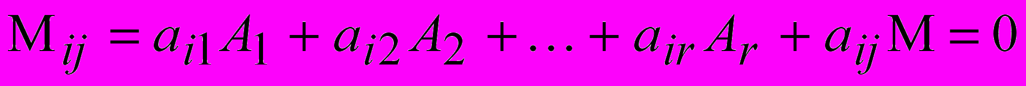 (2)Поскольку в последней формуле алгебраическое дополнение элемента аik не зависит от i, оно обозначено Аk. Поскольку М 0, из равенства (2) можно выразить элемент j-го столбца aij через элементы первых r столбцов i-й строки: