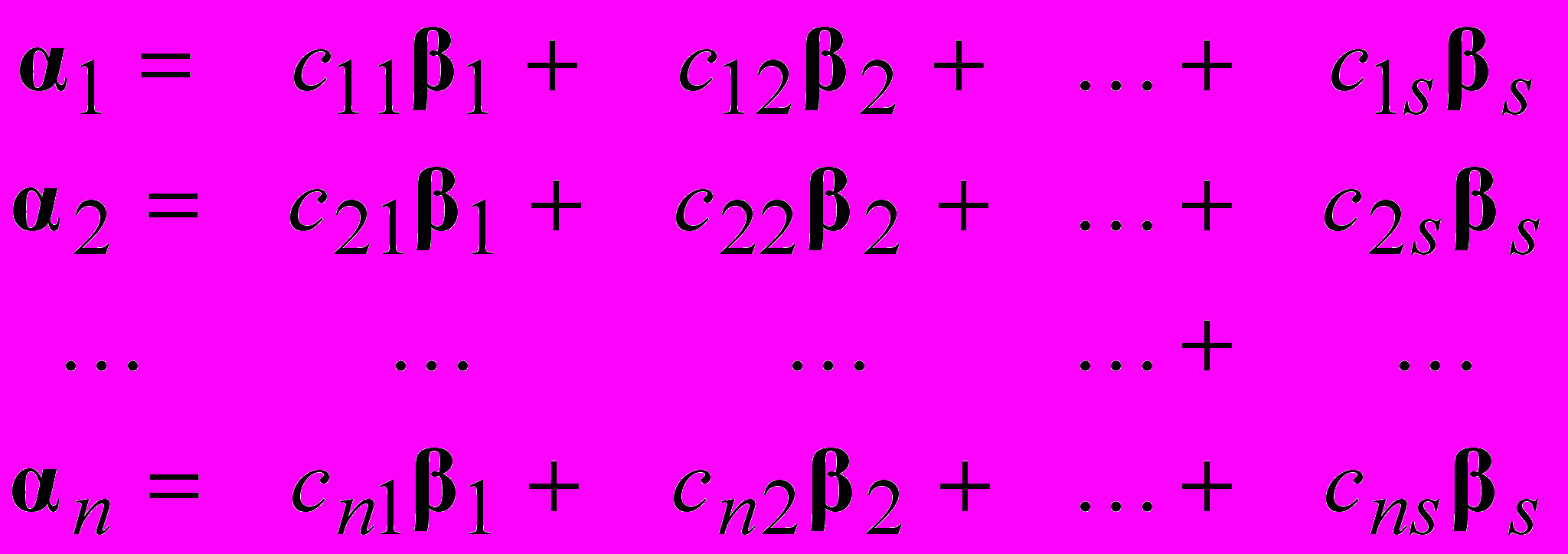 Доказательство. Пусть n > s, и выражение первой системы через вторую имеет вид: