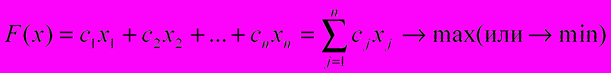 - есть постоянные величины.Определение 2 Функция (1) называется целевой функцией задачи (1)-(4), а условия (2), (3), (4) – ограничением данной задачи.