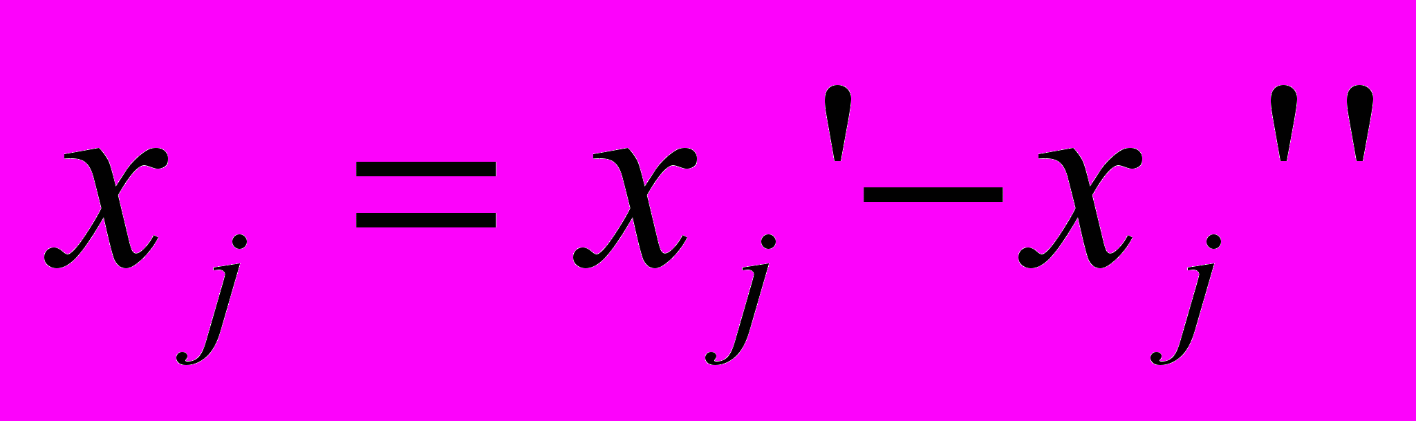 Далее приведем к нужному нам виду прямые ограничения задачи. Любое число можно представить как разницу двух неотрицательных чисел (например 1-6=5). Так мы поступим со всеми переменными, на которые нет прямых ограничений в ЗЛП.