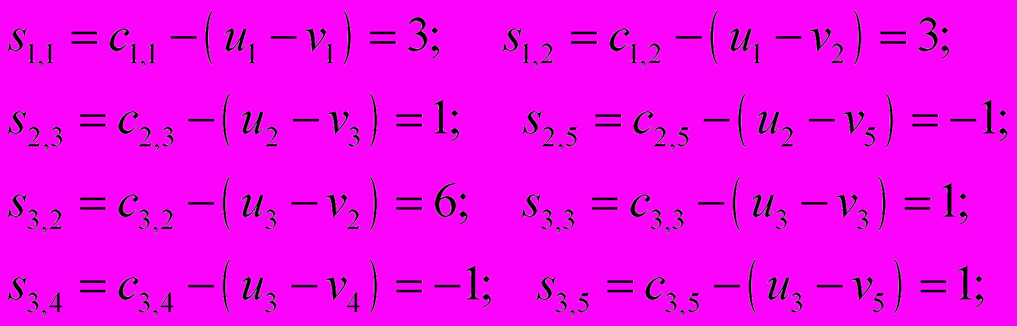 ^ Решаем задачу методом потенциалов. Полагая U1=0, определяем остальные потенциалы из соотношения Ui+Vj=Cij
