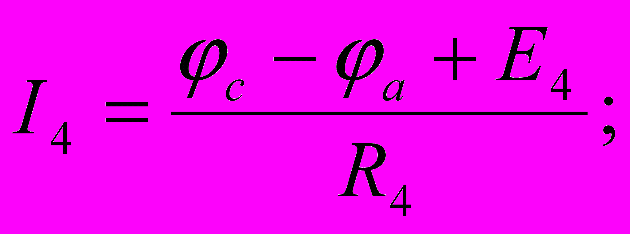 Решив систему одним из известных методов получим значения потенциалов узлов. После чего найдём значения токов в ветвях цепи: