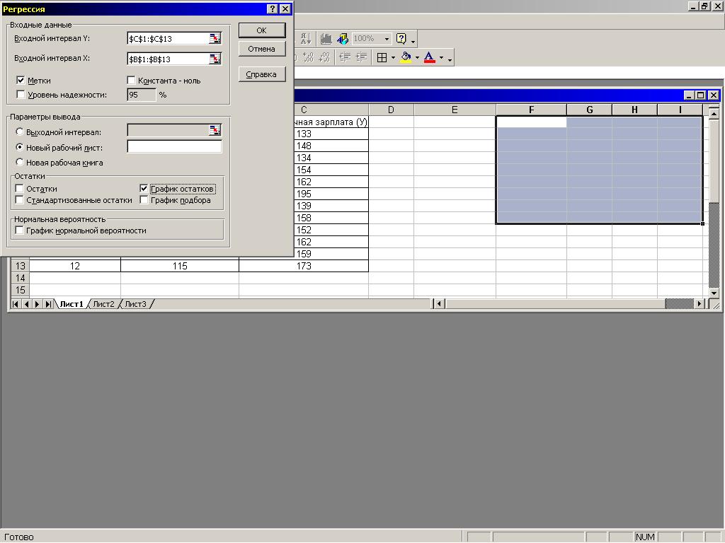 Входной интервал у – диапазон содержащий данные результативного признака;