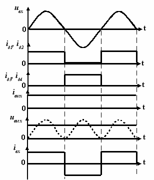 Рис. 2.79. Однофазный мостовой выпрямитель с индуктивным фильтром