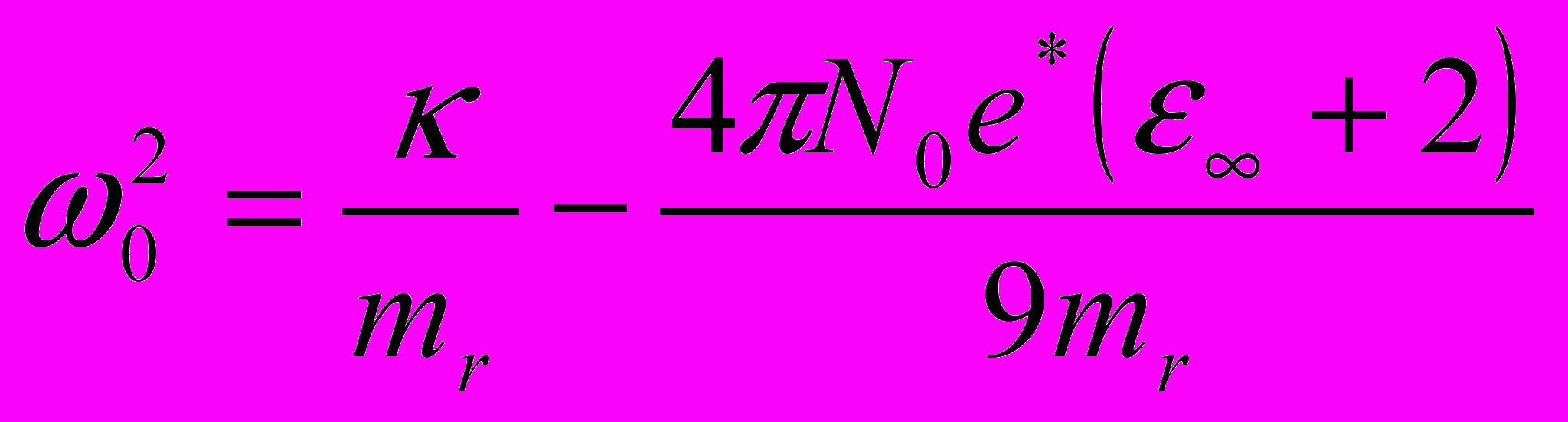Стартуем с уравнения для классического движения разноименных ионов друг относительно друга в длинноволновой оптической ветви кристалла , содержащего два противоположно заряженных атома в одной элементарной ячейке.