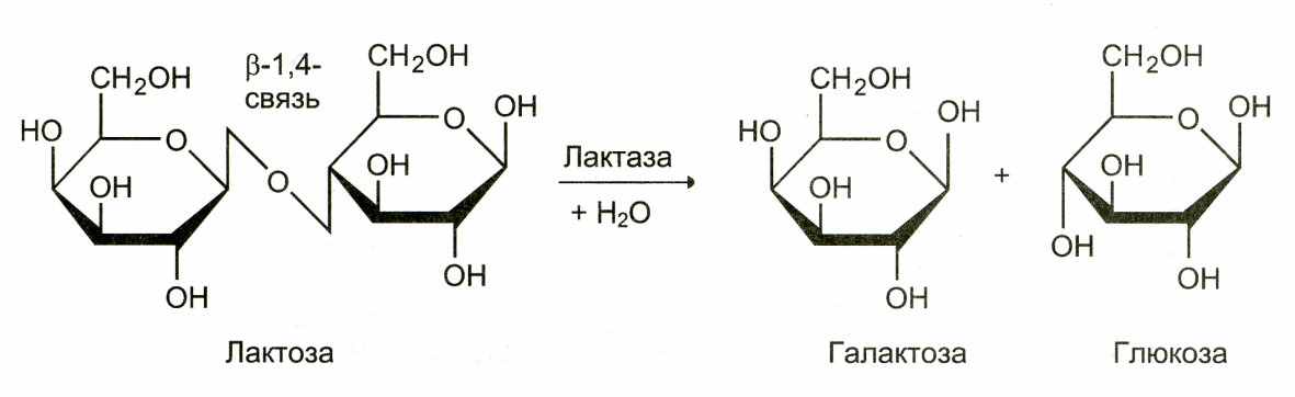 ^ Лактоза (молочный сахар) образована остатками галактозы и -глюкозы. Плохо растворим в воде. Входит в состав молока. Является источником энергии для детенышей млекопитающих. В свободном виде обнаружен у некоторых растений. Используется в микробиологической промышленности для приготовления питательных сред.