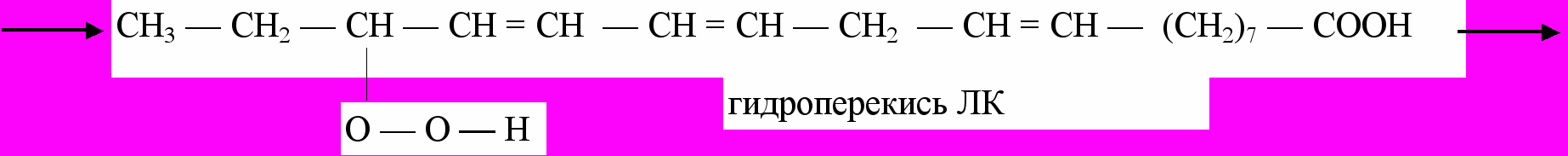Таким образом, развивается аутокаталитический процесс, приводящий к быстрому прогорканию жиров: появляется неприятный резкий запах, горький вкус.Жир становится непригодным для употребления в качестве продукта питания. Аналогичные процессы идут in vivo при перекисном окислении фосфолипидов мембран.