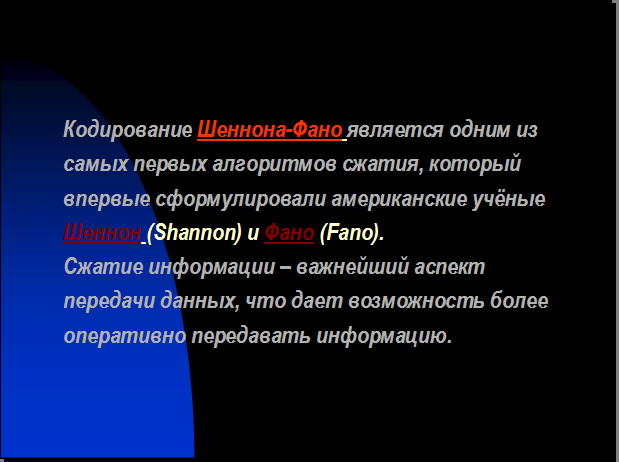| 3 | «Шеннона-Фано» электронный ресурс T.ru [25.09.2007] |