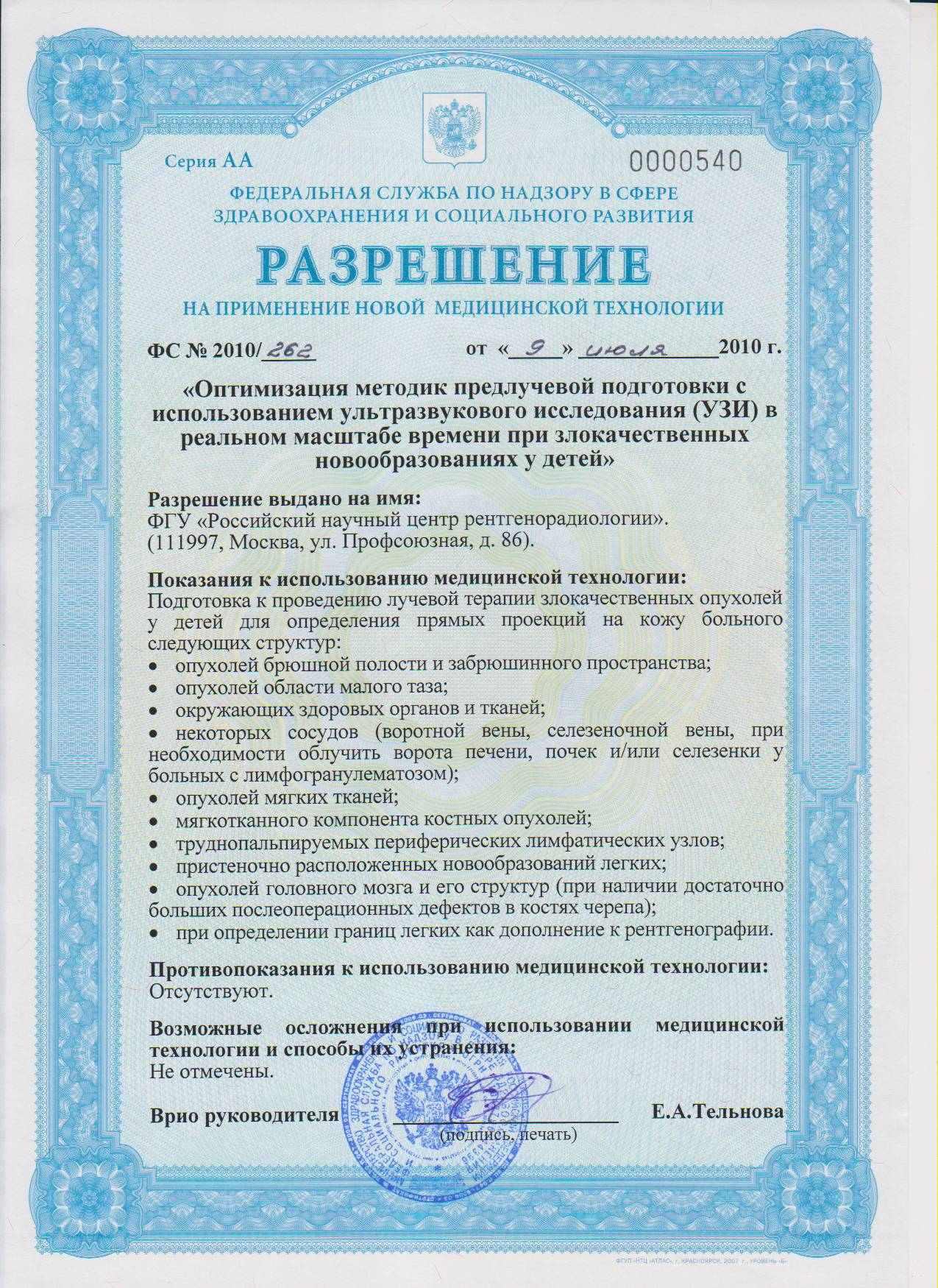 Автор медицинской технологии: ФГУ «Российский научный центр рентгенорадиологии Росмедтехнологий»
