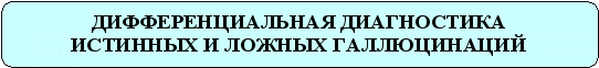 | Галлюцинации | Проекция патологических образов | Чувственная яркость, живость галлюцинаторных образов | Чувство насильственности, «сделанности», влияния извне |