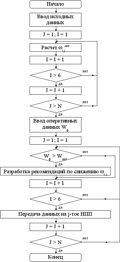 Рис. 1. Алгоритм управления режимами электропотребления НПП.
