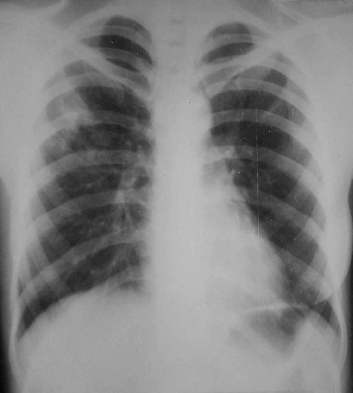 Больная С., 24 г., история болезни № 124, поступила в клинику 22.12.2004 г. с жалобами на кашель со слизистой мокротой с прожилками крови до 50 мл в сутки, повышение температуры тела до 38,6ºС, одышку при физической нагрузке, недомогание, потливость, похудание, слабость.