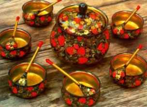 7)^ Художественная обработка металла - Великоустюжское черневое серебро, Ростовская финифть, Жостовская роспись по металлу;