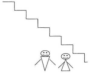 Стимульный материал. Рисунок лестницы, состоящий из семи ступенек. На рисунке нужно расположить фигурку ребенка. Для удобства можно из бумаги вырезать фигурку мальчика или девочки, которую ставят на лесенку.