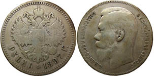 На варшавской монете знак MW помещался под орлом, т. е. там, где на петербургской стояли инициалы минцмейстера. В 1858 г. ушло из обозначения номинала слово "монета". Таким тип оставался до 1886 г., когда произошло его последнее изменение. На монетах снова был помещен портрет императора, с соответствующей надписью, но на этот раз изображалась только голова в профиль: в царствование Александра III - вправо, на монетах Николая II - влево. Обозначение номинала и дата переместились под герб, при этом пришел конец и "полтине": стали писать "50 копеек".