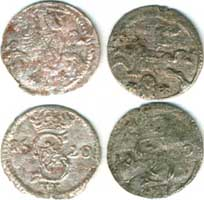 Монеты Новгорода и Пскова представляют заметную особенность редкостной верностью однажды принятому типу изображения и его религиозной окрашенностью. На псковских денгах и четвертцах помещали портрет патрона Пскова - князя Довмонта с его мечом, на новгородских - вызывавшую много споров сцену, изображающую, скорее всего, поклонение Новгорода святой Софии, божеству главного новгородского храма - подобно тому, как на монетах другой республики, далекой заморской Венеции, веками изображался ее патрон - святой Марк, вручающий дожу эмблемы власти.