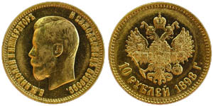 До начала XVII века Россия не знала золотых монет. Златники Владимира не были деньгами в полном смысле слова. В начале XVII века в России царствовал Василий Шуйский. Мало просидел он на троне, ничем не прославил себя, но успел выпустить первые русские золотые монеты: гривенники и пятаки.