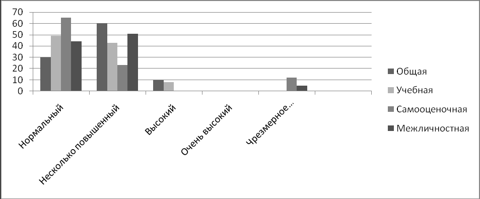 Рис.1 Уровень тревожности в экспериментальной группе после эксперимента
