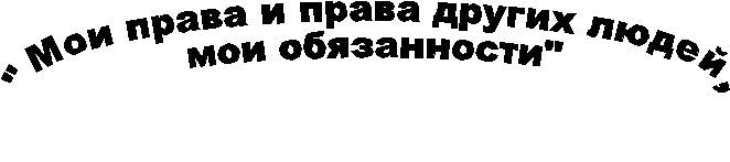 Ученикам предлагается подумать какие права нарушаются, если у человека отнимают принадлежащую ему вещь, вместо отдыха заставляют работать, насильно удерживают, где, либо, выгоняют из дома. Ребятам предлагается описать чувства человека, права которого нарушаются (обида, растерянность, возмущение, гнев т.д.). Обращается Внимание, на то что мы сами, того не замечая, нарушаем права других людей. Предлагаются конкретные ситуации: дети без разрешения берут чужие вещи, своевременно не возвращают взятое в долг, меша ют учителю вести урок, грубят старшим, обижают младших Ученики добавляют свои примеры. Ведущий подчеркивает: так же могут нарушаться и права любого человека. Предлагается подумать, как сделать, чтобы ничьи права не нарушались. После обсуждения ученикам предлагаются правила «Чтобы твои права не нарушались».