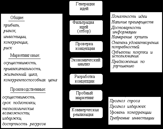 Для достижения успеха фирма должна тщательно прорабатывать каждую стадию новых товаров. Основные этапы этого процесса представлены на рис. 4.