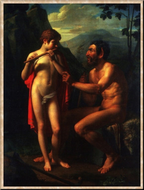 Фавн Марсий учит юношу Олимпия играть на свирели. 1821. Масло