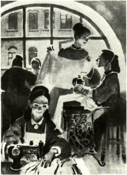 В швейной мастерской Веры Павловны. Иллюстрация П. Пинкисе-вича к