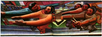 большого расстояния (росписи госпиталя в Мехико, 1955). Сикейрос обновил