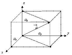 является главной диагональю прямоугольного параллелепипеда, ребра которого параллельны осям координат и равны длинам проекций вектора