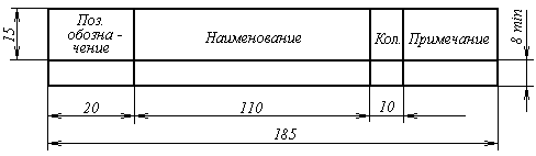 Таблица в общем случае состоит из граф: "Поз.", "Обозначение", "Кол.", "Дополнительные указания", но может включать графу "Материал", "Наименование" и другие необходимые графы.