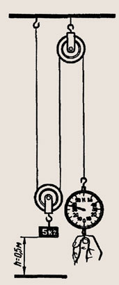 С помощью блоков равномерно поднимают груз (рис. 239). Используя данные рисунка, вычислите КПД установки.
