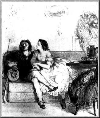 Художник и девушка, сидящие на софе. Б. г. Литография