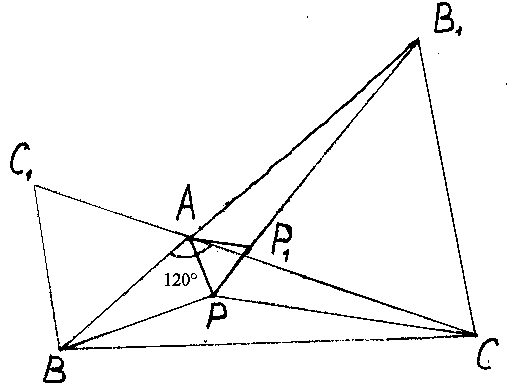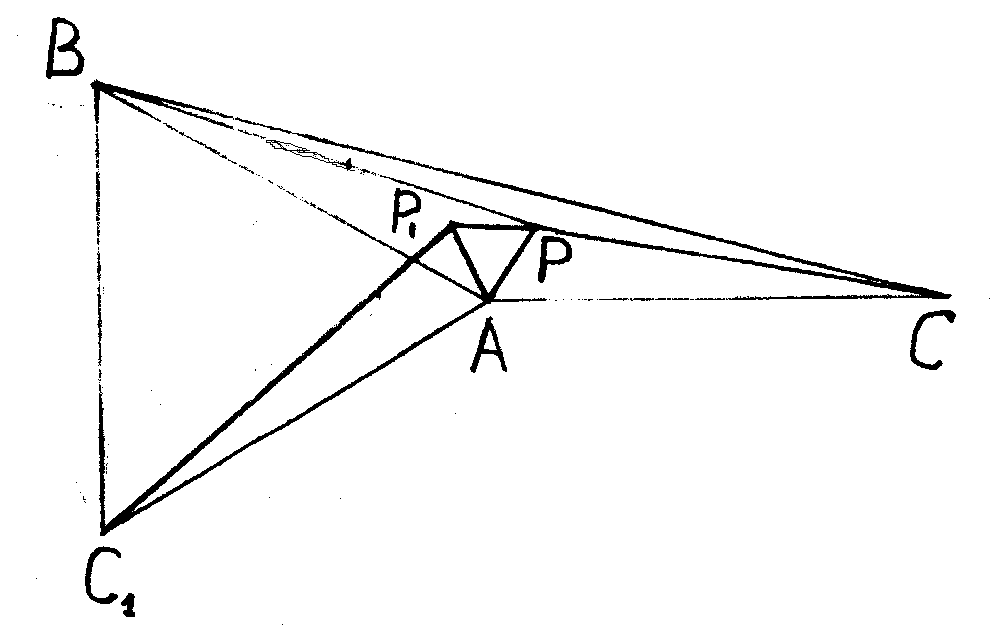 Повернем ∆ ВРА на угол в 60° вокруг точки В так, чтобы он оказался вне треугольника АВС . Точка А займет положение А 1 , не зависящее от выбора точки Р .