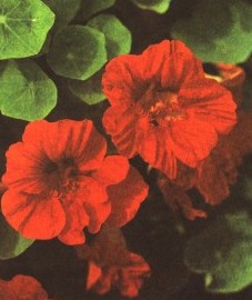 Ярко-оранжевые настурции называют также капуцинами из-за островерхой формы