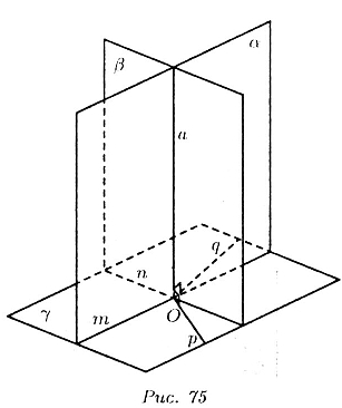 А прямые a, m, n имеют общую точку О (рис. 75).