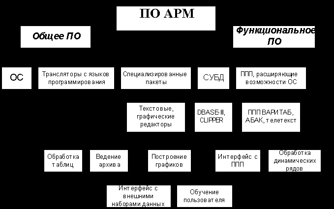 Программное обеспечение любого АРМ (рис. 3.1) подразделяется на общее функциональное: